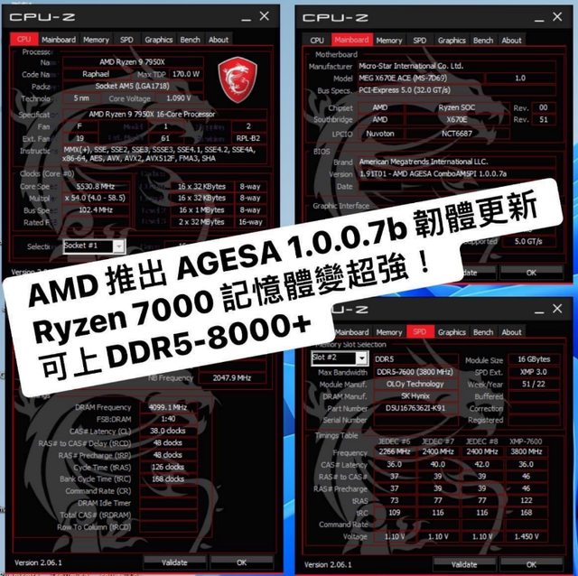 偉哥韌體】AMD 近日發佈全新 AGESA 1.0.0.7b 韌體更新,大幅提升了 Ryzen 7000 處理