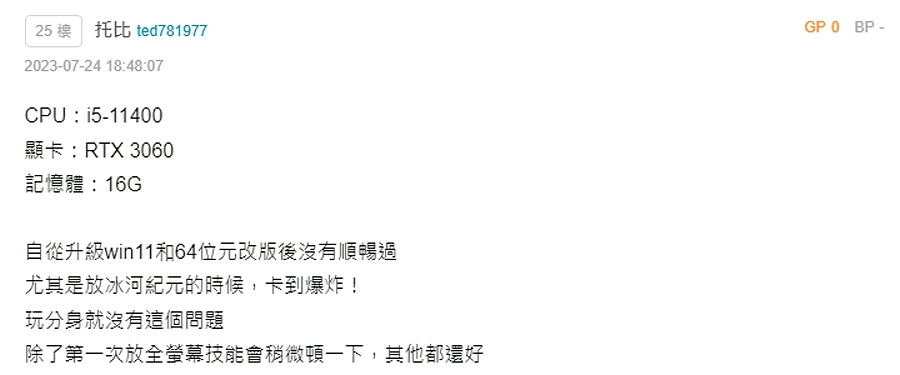 → NetsFan: 到正常情況下遊戲跑不順吧 27.242.100.29 07/31 15:26