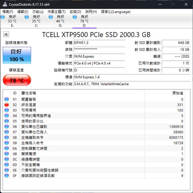 (後續 SSD Utils 也確認無誤