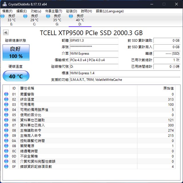 標題[開箱] TCELL XTP9500 2T M.2 PCIE Gen4