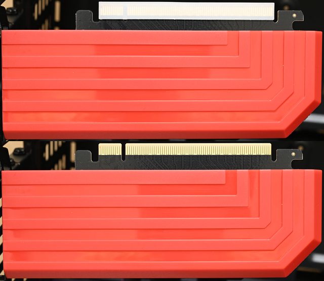 ●機殼內附支援PCIe 4.0 x16的高品質顯示卡專用直立延長線,主機板插槽連接處設置外