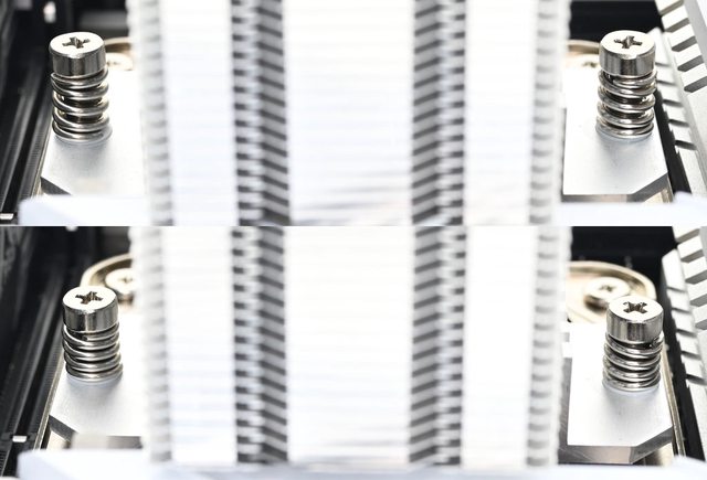 ▼托架固定螺絲,4支螺牙較密的是Intel用(圖左),4支螺牙較疏的是AMD用(圖右)