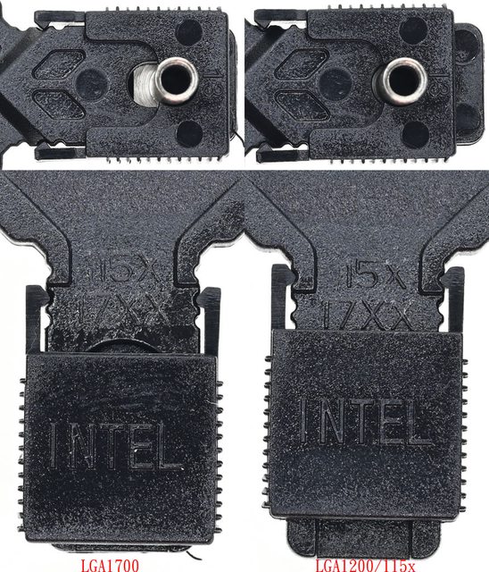 ▼對應LGA1700(左上/左下)及LGA1200/115x(右上/右下)的固定鎖點及滑套配置示意圖