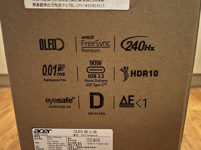 標題[開箱] Acer OLED X27U副螢幕開箱及小小測試心得