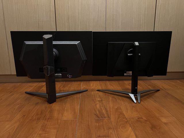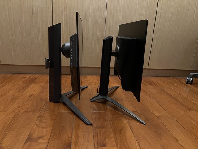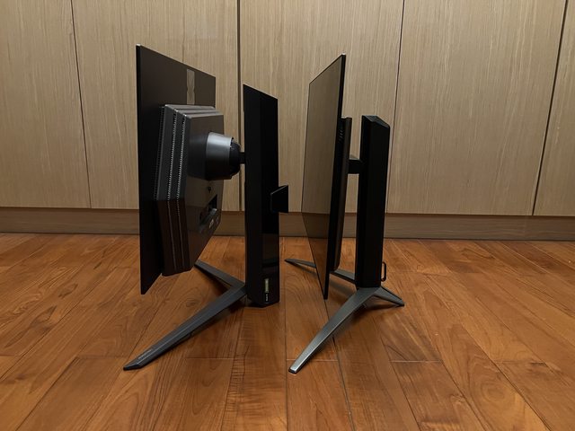 右邊是X27U(DP 1.4)、左邊是27GR95QE(HDMI 2.1)