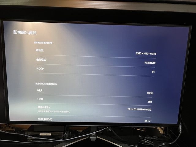 接PS5,HDMI 2.0雖然可顯示1440p/HDR10/120Hz,但無法開啟VRR和ALLM
