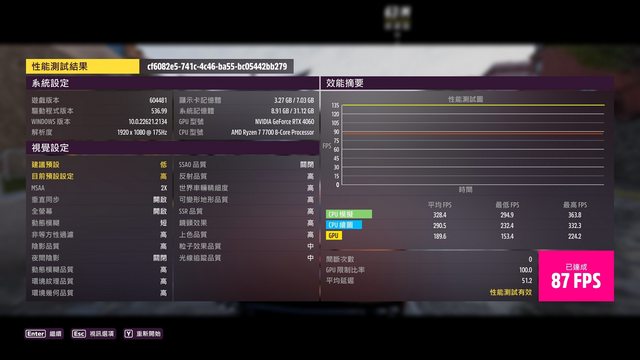 RTX4060:平均 85 1% Low 幀 78