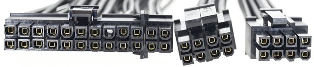 ▼主機板/處理器/顯示卡電源模組化線路接頭採用鍍金高電流金屬連接器