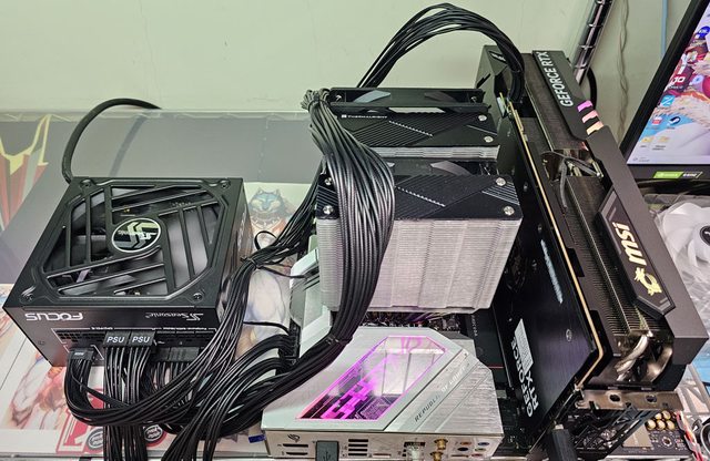 ▼用隨附的12VHPWR模組化線材連接MSI GEFORCE RTX 4090 GAMING X TRIO進行測試