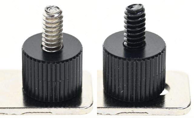▼通用黑色螺柱(左)對應Intel LGA1200/115x及AMD AM4,LGA1700專用銀色螺柱(右)對應