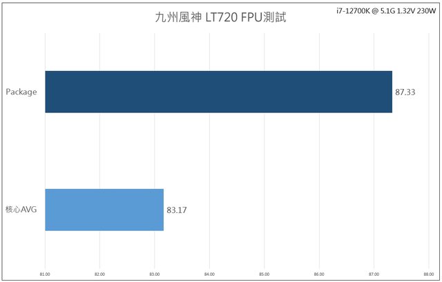 最後是溫度測試,i7-12700K的裸測平台,設置為