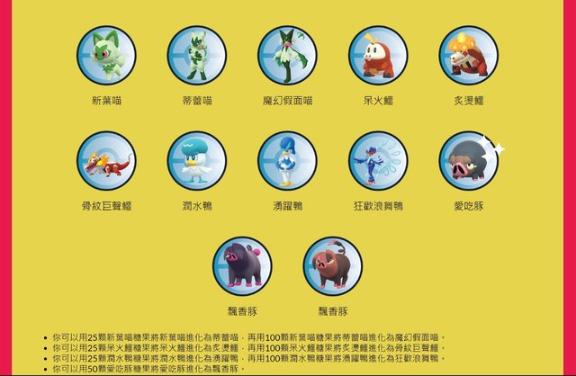 (你可以用25顆新葉喵糖果將新葉喵進化為蒂蕾喵,