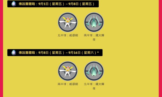傳說團體戰:9月8日(星期五)~9月16日(星期六)^