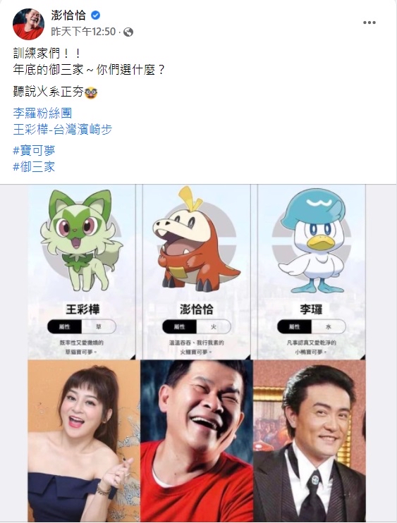推 CaoPi: 王彩樺、澎恰恰、李王羅!08/31 00:59