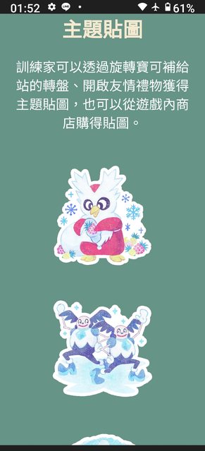 -訓練家可以透過旋轉寶可補給站的轉盤、開啟友情禮物獲得主題貼圖,