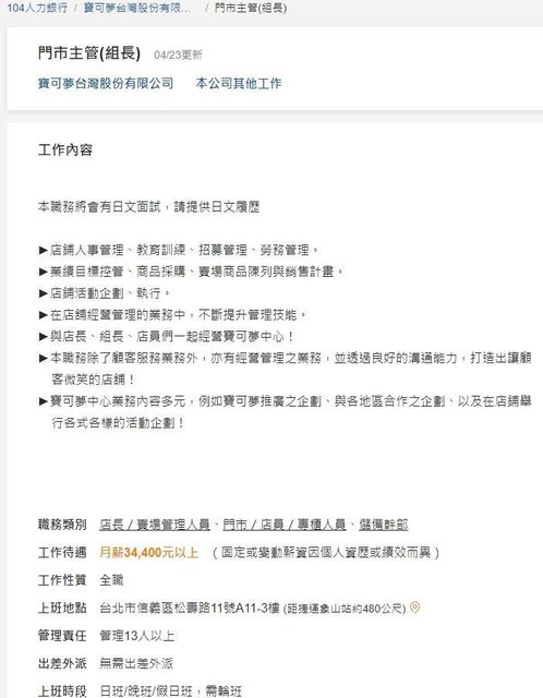 推 myaku524: 太低了吧,很多非主管又不用日文的門市人員就有這薪水了 05/03 18:48