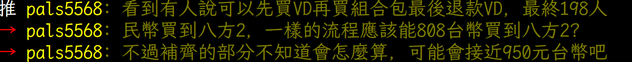 → Tencc: 有能力當然這樣效益最好啦,畢竟特價就是一種醍醐味跟服務 06/28 17:29
