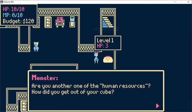 整體是像素畫風,人物的對話也都超可愛!比如怪物佔領人力資源部(HR)因為那邊有