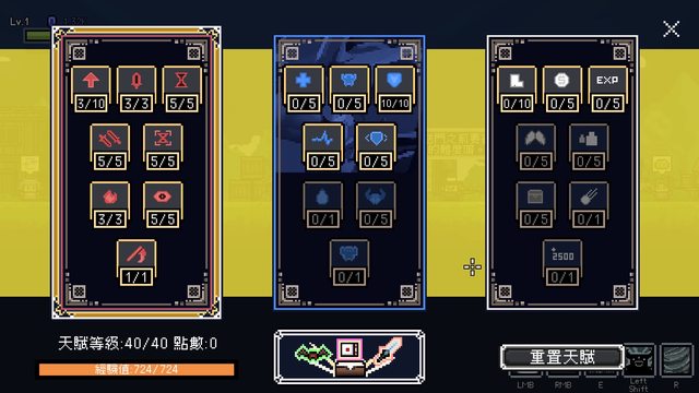 以橫向卷軸roguelite的方式進行 總共有8+1個大關卡