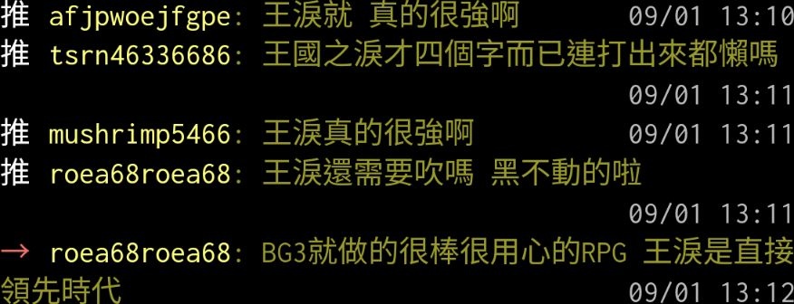 → wuchianlin: ,goty未免也太看不起王國之淚跟BG3了吧 09/07 10:14