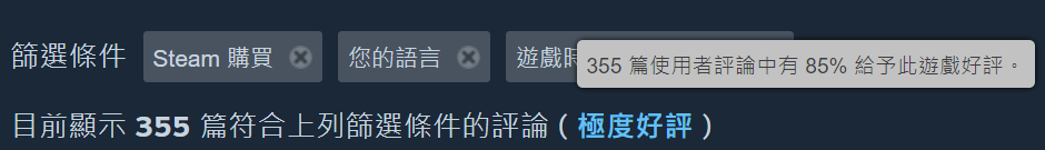 shuanpaopao: 我把條件設定為「steam限定」「簡中語系」「玩2小時 09/10 09:10