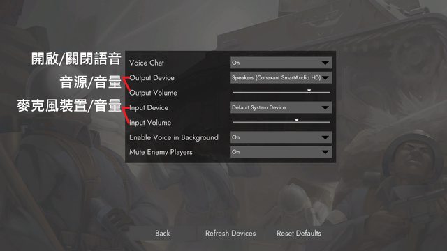 : : 開啟遊戲後,於 遊戲設定 Options 介面,建議適度調整 音效 SFX Volume 避免