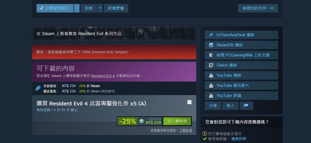 推 z86125: 我記得RE4這是開新檔都能用 好像也不算真的消耗性DLC? 01/27 13:40