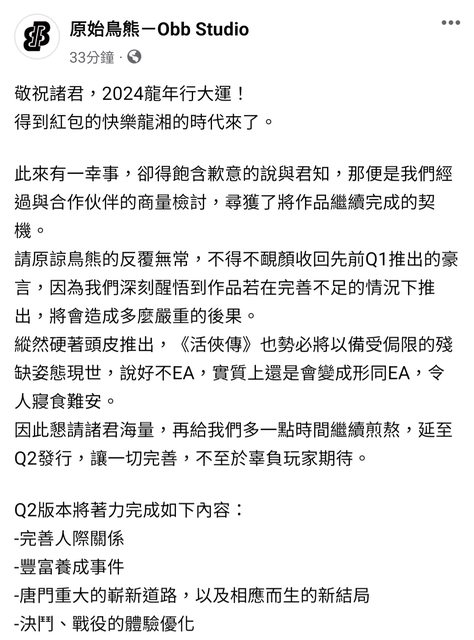 推 tuboshu: 感謝古龍讓我們知道延期比半成品好。02/05 15:42