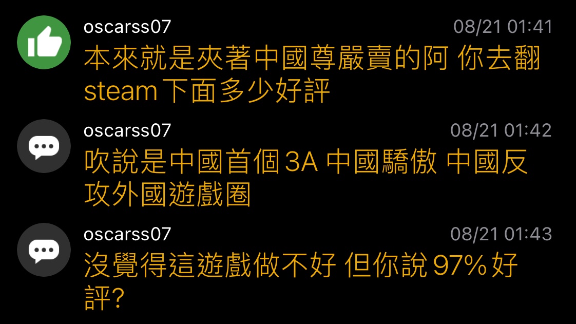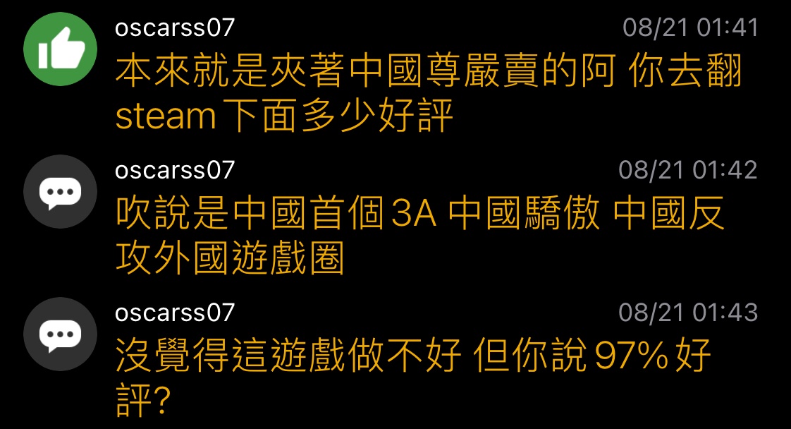 → Purekim: 那時候黑猴剛出來,中國人也是很多人質疑。但是背後的金 08/21 14:18