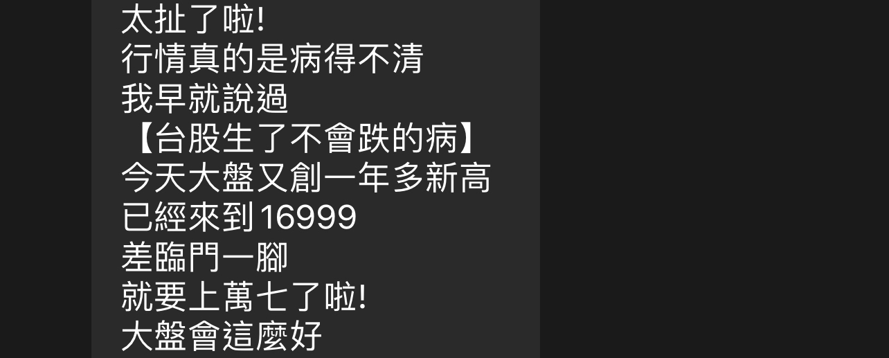 → Nick0907 : 反正台股都能爽爽 06/12 10:24