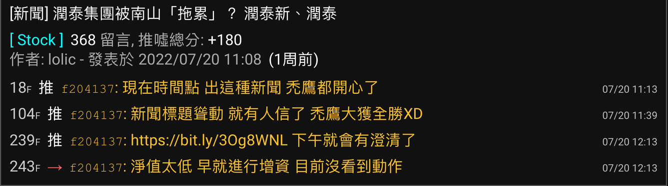 推 noname78531 : 我師傅說35潤泰新不賭是棒錘 隨便一利多都能漲 還能 06/12 17:12