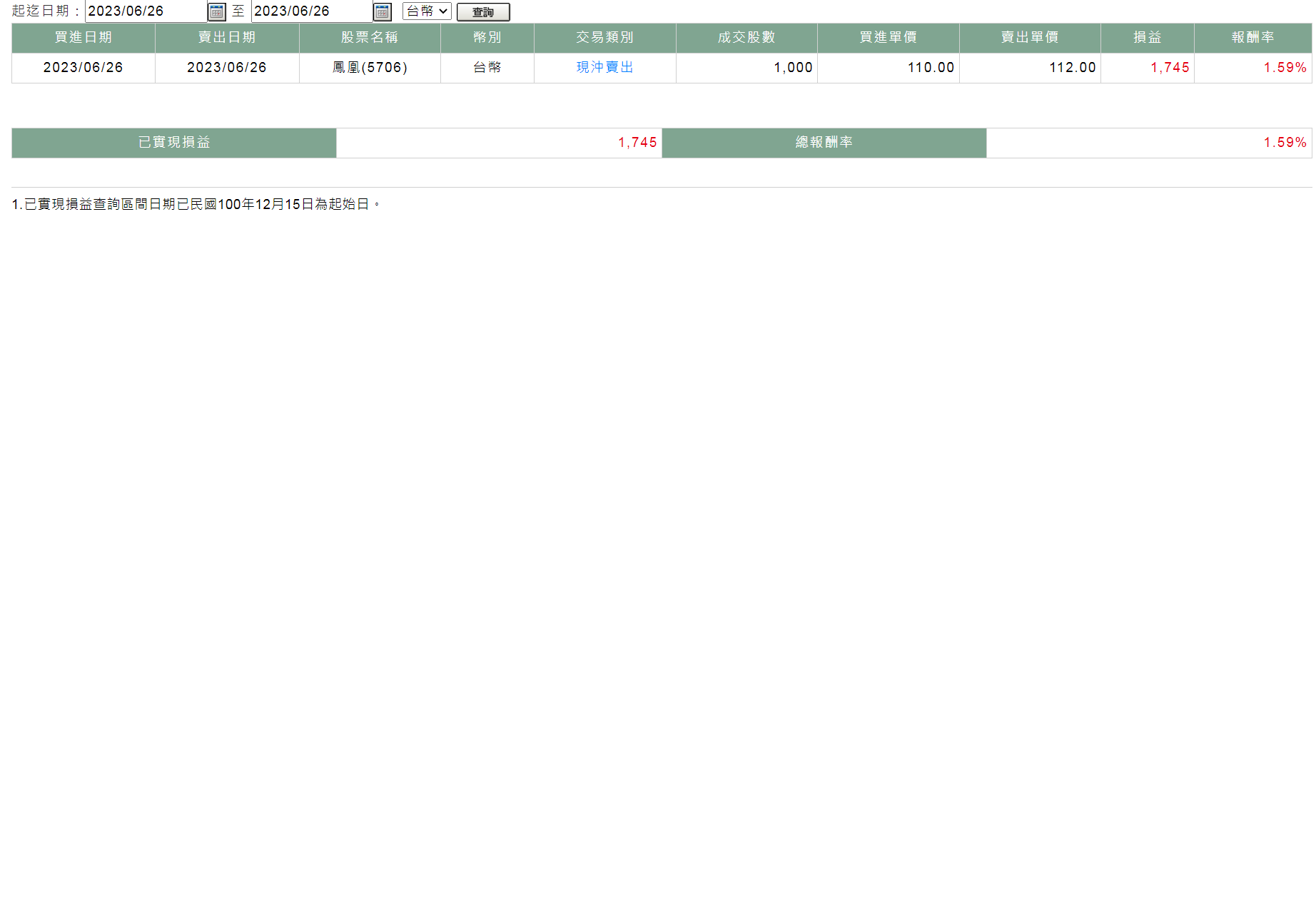 → SMG2016 : 實現損益(證券app有統計),如果你要細到個別股票 06/13 20:37