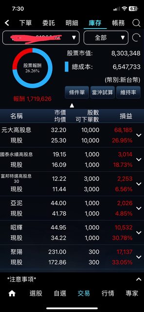 不可能每檔都是 但很多檔都是 上面列出那些是我超過100%的 還有很多是70% 90%的 當然選股也是門學問 我不用每檔都是 我今年平均領8%股利 很滿意了 賣掉賺錢的股票 就跟吳宗憲賣掉周杰倫一樣 不多說了 有福報就懂