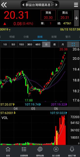 推 BaoBao17 : 原文00919上市來也漲很多啦,自己是抱得很開心 06/15 15:55