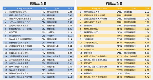 → tyrone0923: 沒資料是這邊排名沒有排到,只要有人看都會有收視資料 09/21 00:19