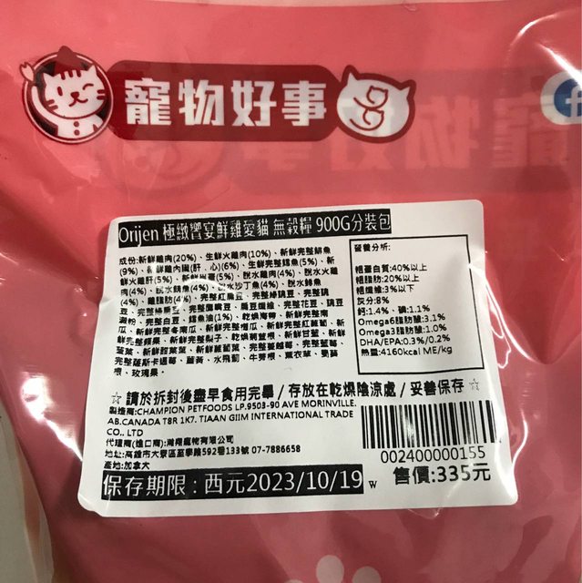 物品 Orijen極緻饗宴 鮮雞愛貓無穀 900g分裝包