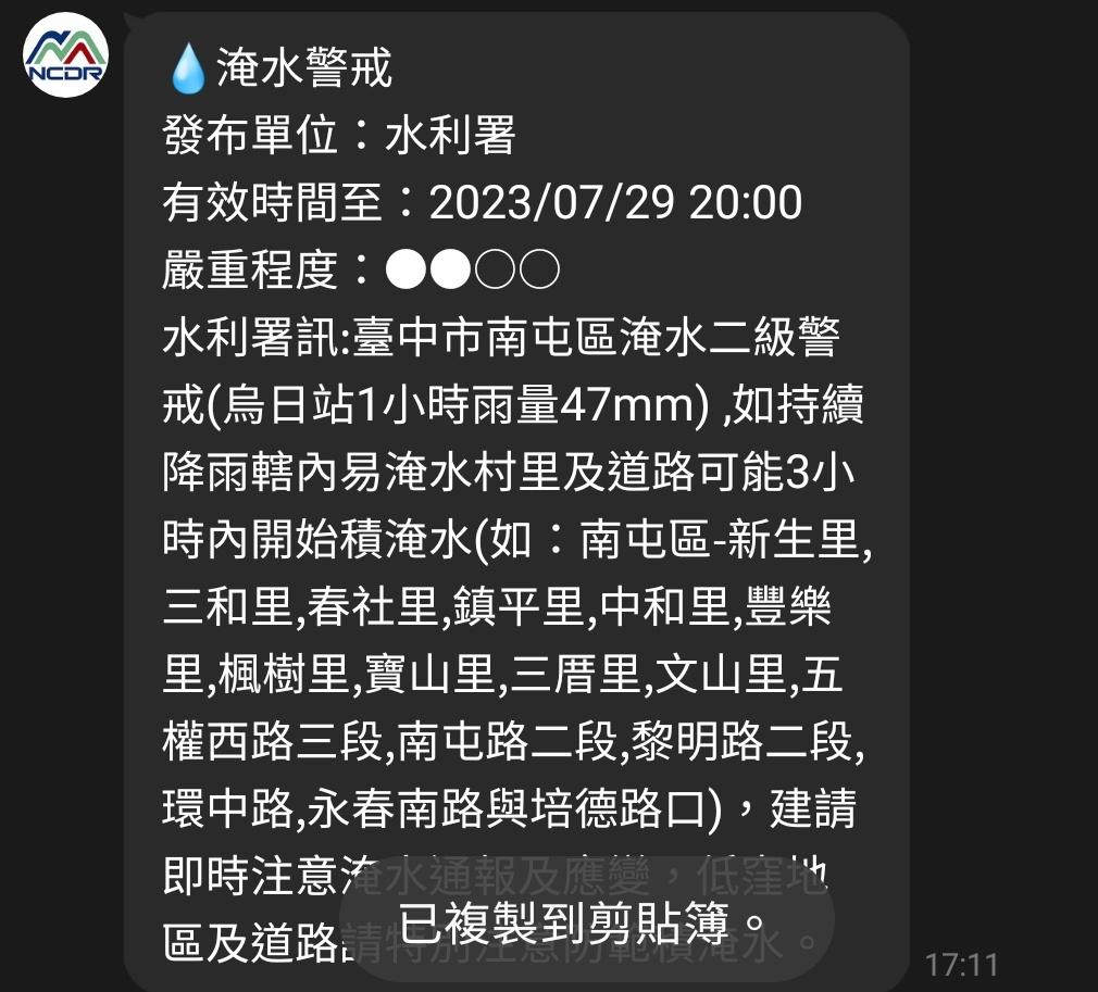 debb0128 : 一直收到水利署淹水警訊… 07/29 17:53