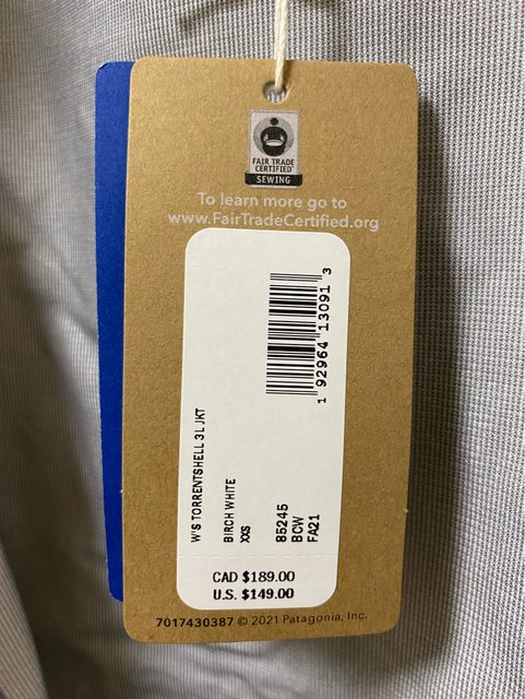出售物品5: 全新女款Patagonia Torrentshell 3L Jacket - 白色 XXS號 售價:4200 照片:
