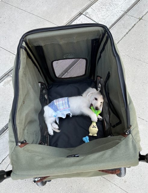 6. 備註:因家裡狗狗太小隻不適合,已購入其他推車故售出,另售公狗禮貌帶(拆過兩片