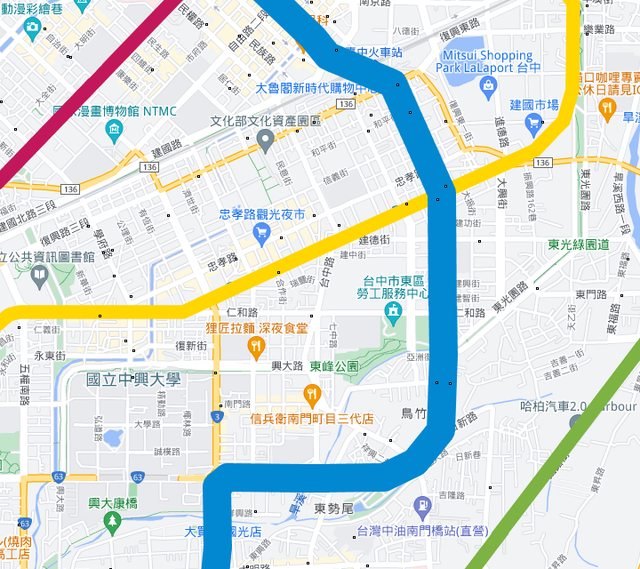 黃線可以在建國市場門口振興路長毛, 緩緩的圓弧