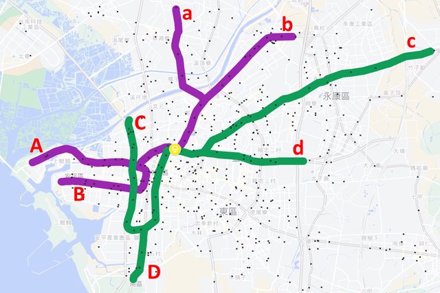 決定興建順序的關鍵是同站點捷運公車, 一公里一個站牌那種