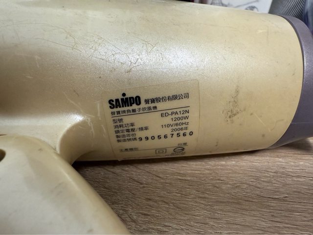 物品名稱:聲寶負離子冷熱吹風機