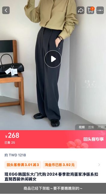 韓貨 EGG 直筒西裝褲 墨色 S