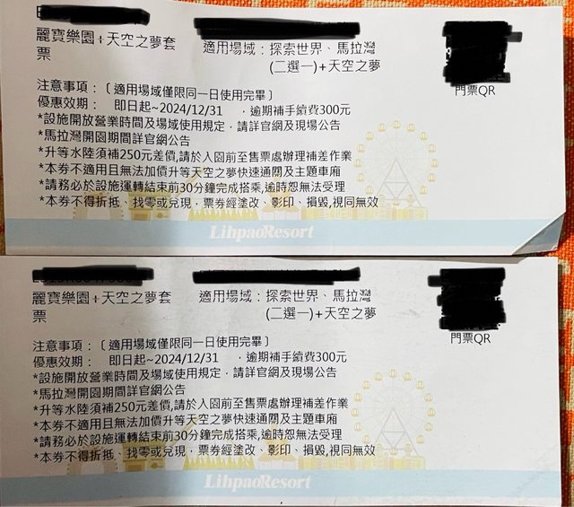 麗寶樂園門票(探索世界、馬拉灣二擇一)+天空之夢摩天輪門票