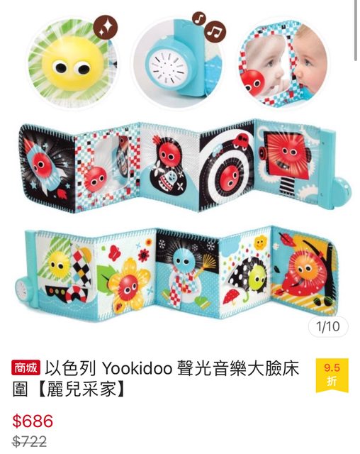 10.物品名稱:二手以色列 Yookidoo 聲光音樂大臉床圍 二手(音效聲光都正常、但有明顯使用痕跡) 價格:150 物品實照: