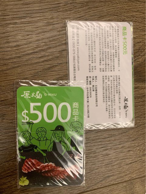 2. 物品名稱:原燒商品卡 價格:9折(面額500、有6張) 物品實照: