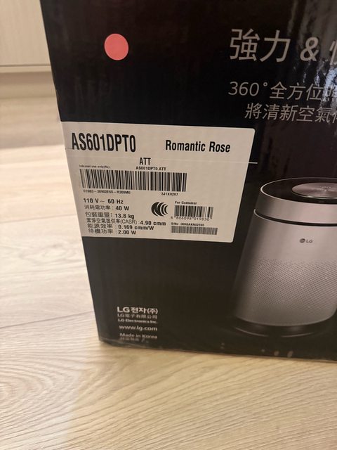 3. 物品名稱: LG 樂金 奈米抗菌循環扇清淨機(AS601DPT0 價格:11800 保固:2年(2023/12收到) 物品實照: