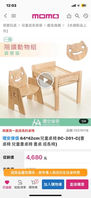 6. 物品名稱:全新環安傢俱 64*42cm兒童桌椅DC-201-C(霹靂貓) 價格:3800 物品實照: