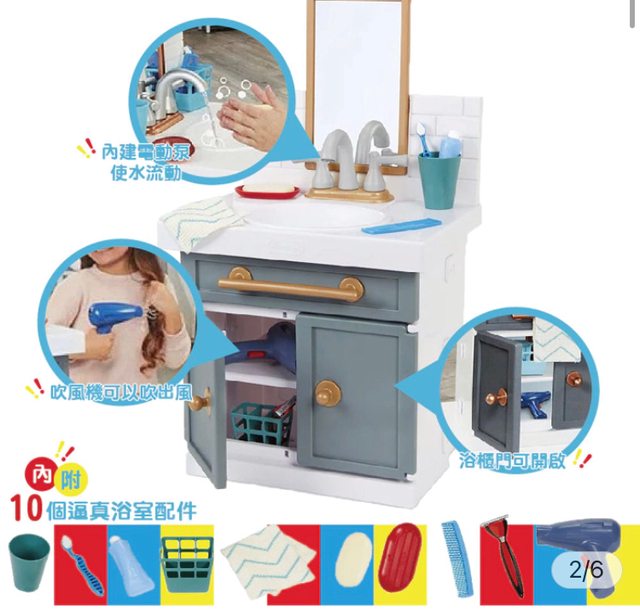 7.物品名稱:二手Little Tikes仿真浴櫃 二手(少用、配件都在,只有牙膏蓋子被啃掉了) 價格:500 物品實照: