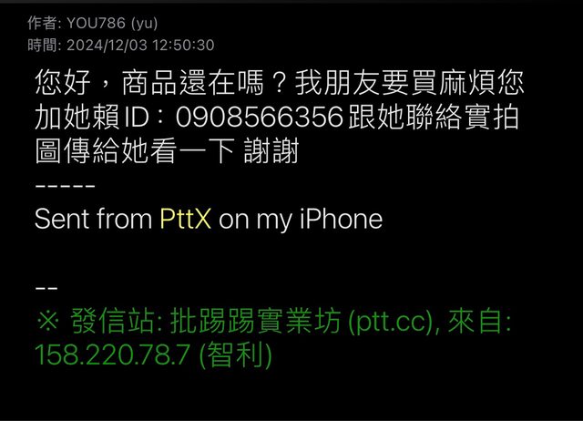 推 fp737: 寧願賣便宜點 直接約超商面交 1.168.87.170 12/03 15:41